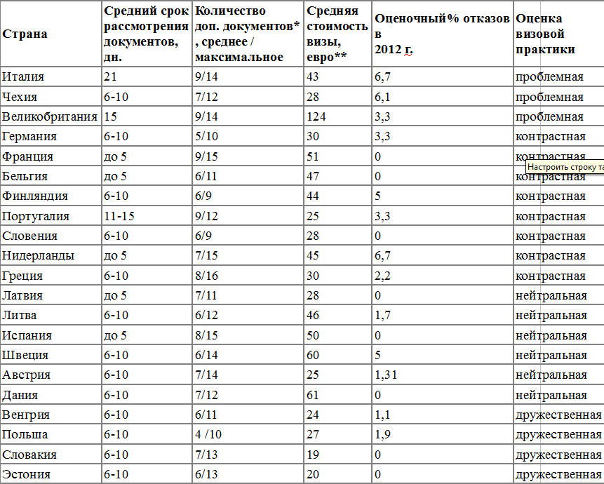 ** стоимость шенгенской визы – 35 евро. Показатель демонстрирует реальный уровень затрат на получение визы аппликатом с учетом дополнительных расходов – на услуги визового центра, посредников и т.д.