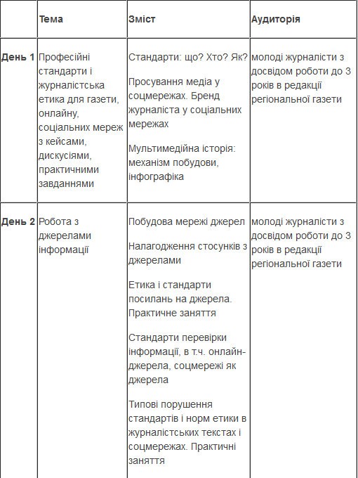 1- Перші два дні Школи - для молодих вже працюючих журналістів з досвідом роботи до 3 років в редакції регіональної газети
