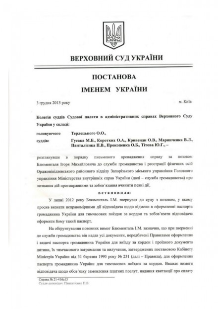 Соответствующим решением в декабре 2013 года суд последней инстанции в Украине подтвердил правоту движения "Стоп беспределу в паспортных столах" в течение 2 лет