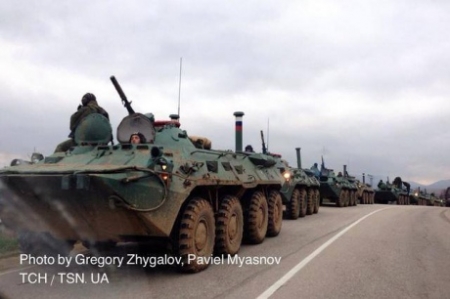 13.18 Пресс-секретарь премьер-министра Крыма, Могилева, Виолетта Лисина подтвердила о российских БТРах в Крыму - по АРК передвигаются российские бронетранспортеры. "На развилке возле села Укромное действительно стоят (на данный момент) около 7 БТР ЧФ РФ", - написала она в Фейсбуке утром.