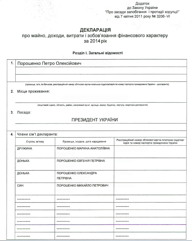 Кроме того, из собственных доходов, полученных в 2014 году, Порошенко профинансировал свою избирательную кампанию как кандидата в Президенты.