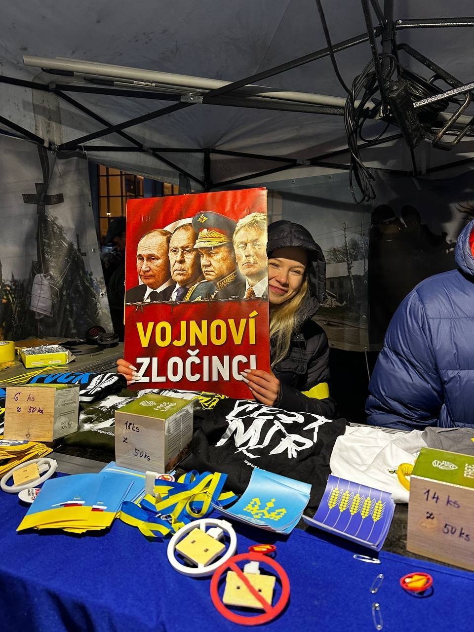 Виступив на мітингу і чеський дизайнер та активіст Додо Добрик, який започаткував ініціативу «Подарунок для Путіна». В рамках цієї ініціативи протягом двох років було зібрано понад 26 мільйонів євро, за які придбали зброю, техніку та снаряди для ЗСУ.