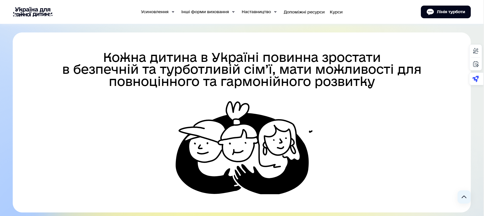 На новій державній онлайн-платформі можна знайти інформацію про усиновлення та сімейні форми виховання: опіку та піклування, прийомні сім’ї, великі прийомні сім’ї та патронат. Потенційні батьки можуть отримати покроковий алгоритм дій, консультацію експерта та пройти освітній онлайн-курс для майбутніх усиновлювачів.