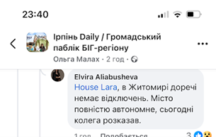 Фото 8. Скріншот з ФБ - Відвертання уваги. Замість обговорення реальних причин енергетичних проблем і шляхів їх вирішення, увага перемикається на порівняння з іншими країнами, які не перебувають у стані війни.