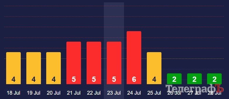 Сьогодні та кілька попередніх дні К-індекс (показник, який характеризує геомагнітну активність і класифікує геомагнітні бурі) показував 5 балів, проте завтра підніметься до 6 балів.