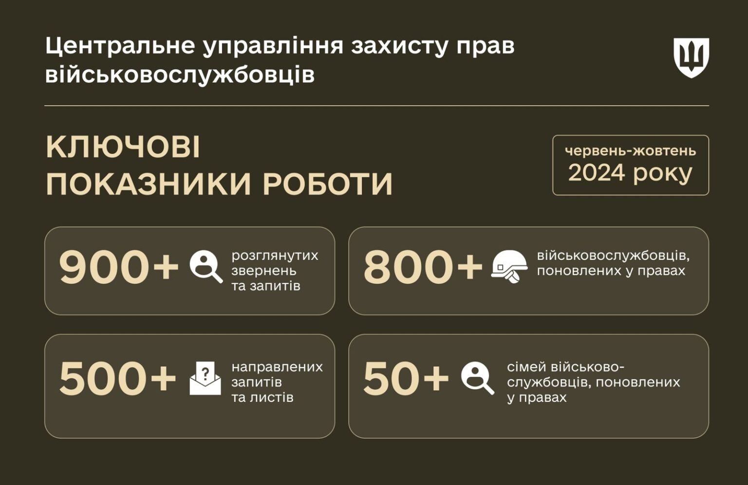 Центральне управління захисту прав військовослужбовців Міністерства оборони України за перші 4 місяці діяльності поновило права 851 військового та 57 родин захисників.