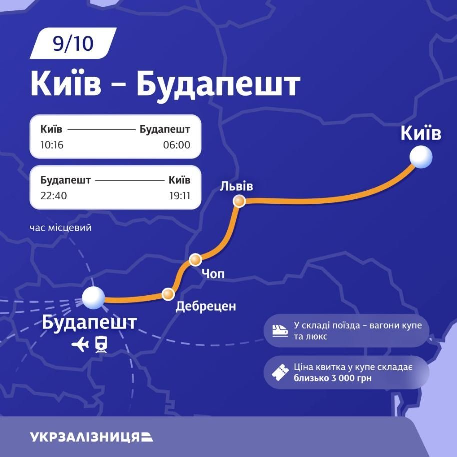 З 15 грудня також почне курсувати поїзд №9/10 з Києва до Будапешта — великого залізничного та авіаційного хабу.