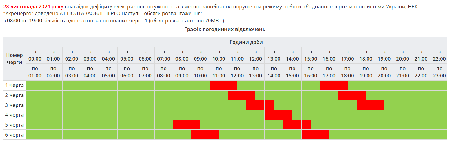 Час та обсяг обмежень протягом доби можуть змінюватися. Актуальні графіки відключень для Полтавщини оприлюднило Полтаваобленерго: