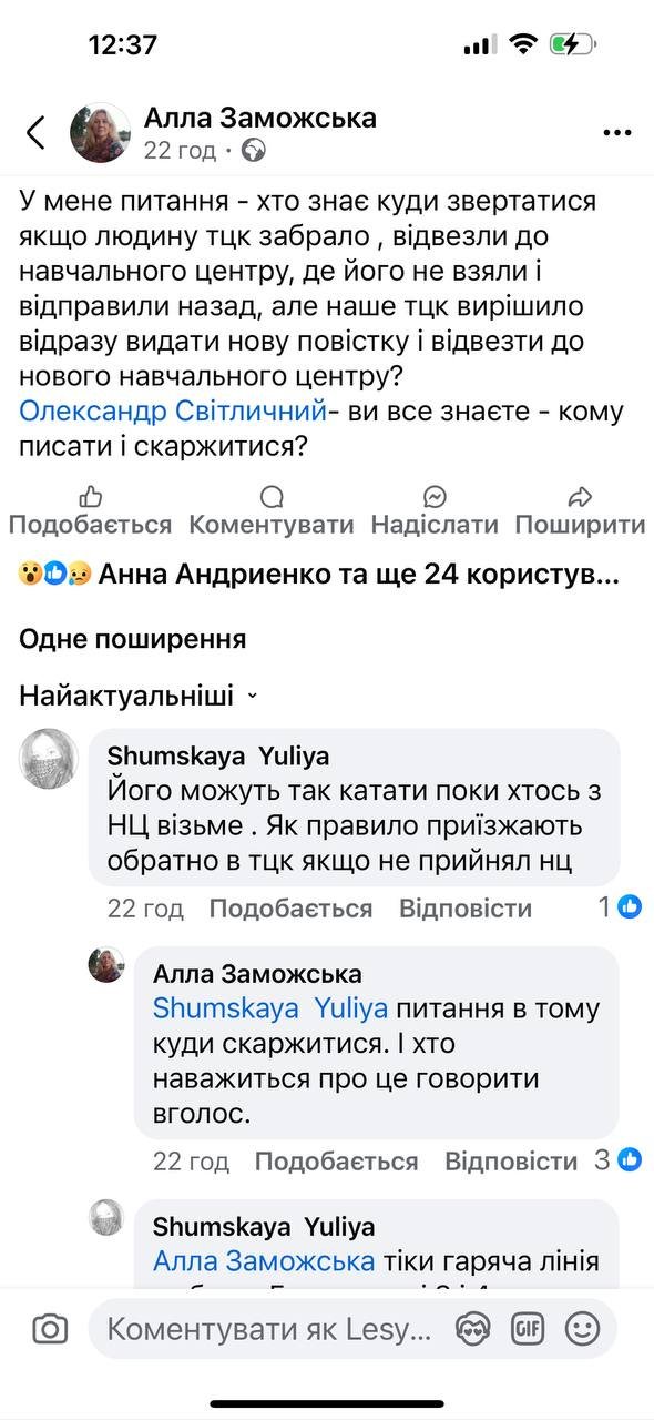 Українці мають можливість поскаржитися на протиправні дії представників Територіальних центрів комплектування та соціальної підтримки за контактними номерами до Командування Сухопутних військ ЗСУ або до керівництва Полтавського обласного ТЦК та СП