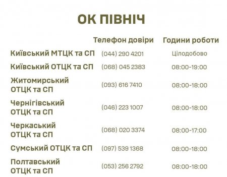 У Полтавський ОТЦК та СП можна зателефонувати з 8.00 до 18.00 за номером (053) 256 2792.