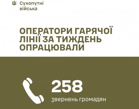 Крім того, для військовослужбовців працює Call-центр Командування Сухопутних військ, куди можна подзвонити за номером 0800500410. Цей центр забезпечує прямий зв’язок між військовими й військовими частинами та командуванням, а також допомагає розв’язати питання щодо проходження військової служби, підготовки, забезпечення та підтримки, пояснюють на сторінці Командування у Facebook.