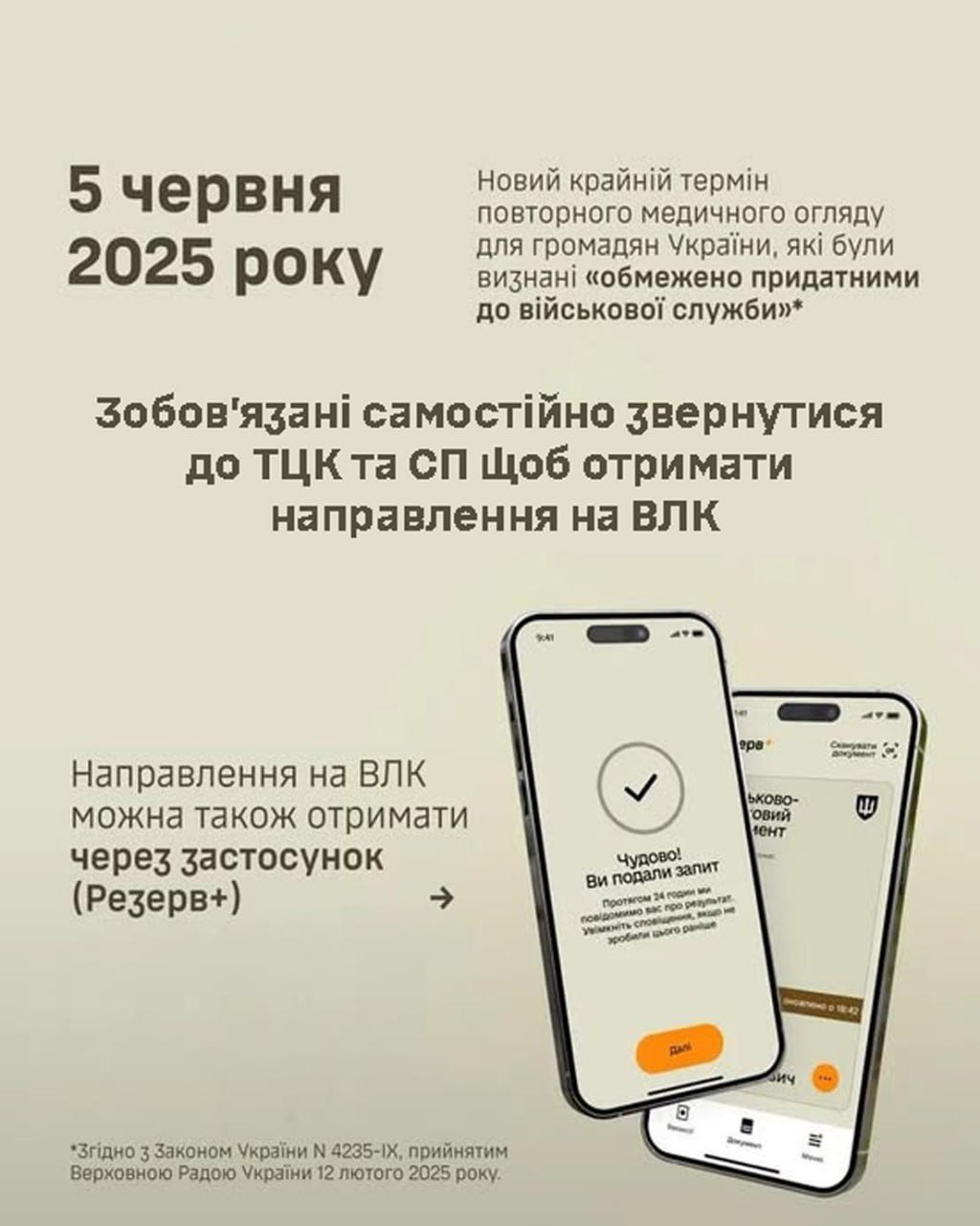 Нагадаємо, нещодавно ми писали, що новий термін проходження повторного ВЛК був встановлений законом №4235-ІХ, прийнятим Верховною Радою України 12 лютого 2025 року.