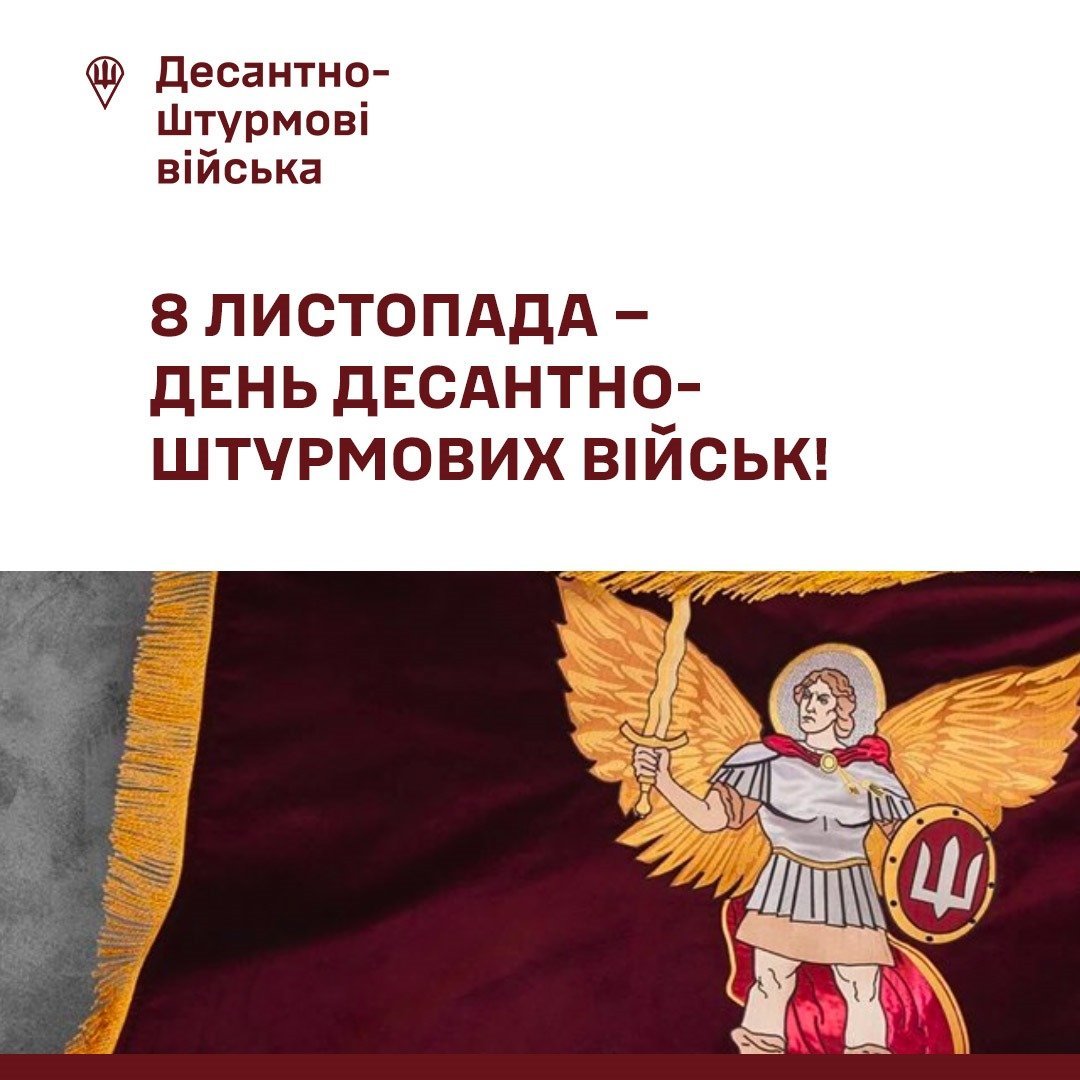 — Відтепер відзначаємо наше свято 8 листопада — як і має бути за Новоюліанським календарем… 8 листопада, Свято всіх ангелів Божих на чолі з Архангелом Михаїлом, невипадково є Днем ДШВ ЗСУ. Святий Михаїл — старший воєначальник небесного воїнства і покровитель військових на землі. За церковними переказами, саме він очолив усіх добрих ангелів, щоб боротися з силами, які повстали проти Бога, і переміг їх, — зазначили на сторінці Facebook Командування ДШВ ЗСУ.