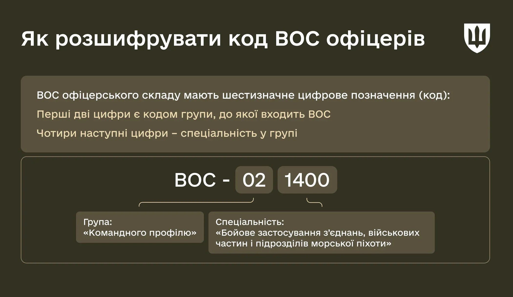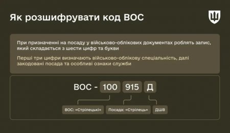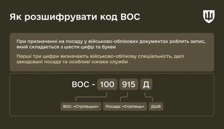 ВОС має цифрове позначення, що дозволяє вести автоматизований військовий облік — її коди можна розшифрувати