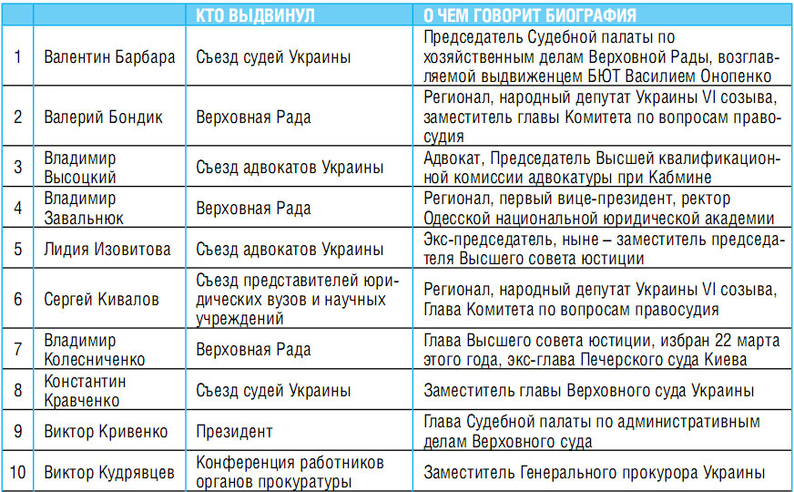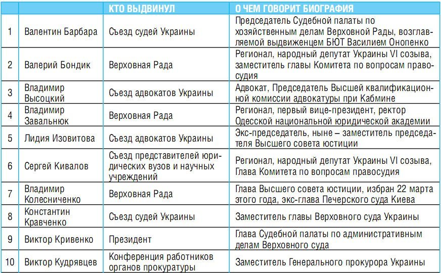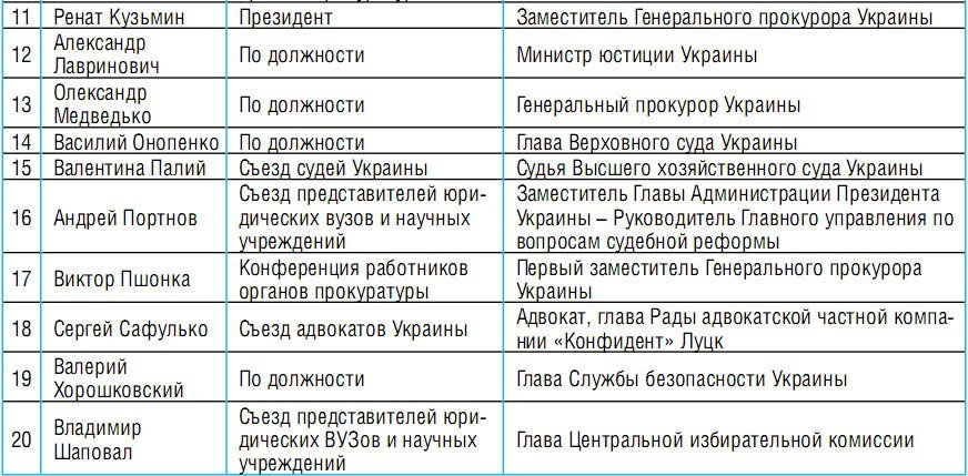 Александра Волкова уволили не только из Совета, но и вообще с должности судьи – с аргументацией «скрыл родственные связи с другим судьей». Зато из шести новых членов Совета трое – прямо подчинены президенту. Тот самый заместитель его администрации Портнов, министр юстиции Александр Лавринович и председатель Службы безопасности Валерий Хорошковский. Еще один – Виктор Пшонка – был прокурором Донецкой области. Вот как теперь выглядит орган, вершащий судьбу судей: