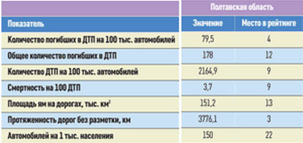 Трассы Полтавской области заняли 4 место по количеству смертей на 100 тысяч автомобилей, и 3 место по протяжности дорог без разметки.