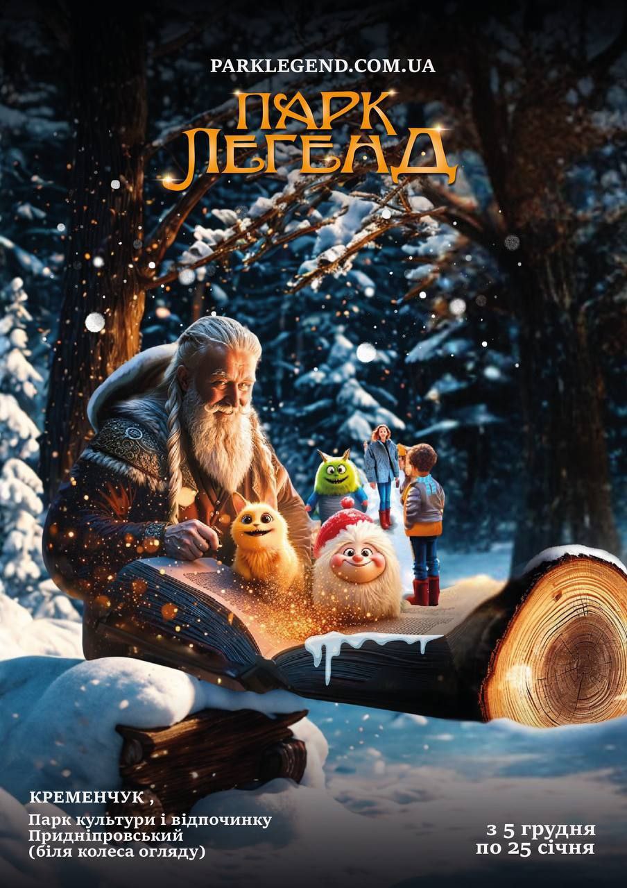З 5 грудня у Кременчуцькому парку культури і відпочинку Придніпровський стартує «Парк Легенд» - унікальний проект, де казкові велетні, тролі та інші міфічні істоти оживають завдяки сучасним технологіям аніматроніки. Гостей зустрічатимуть інтерактивні гіганти заввишки до 5 метрів, які рухаються, розмовляють і реагують на присутність людей.