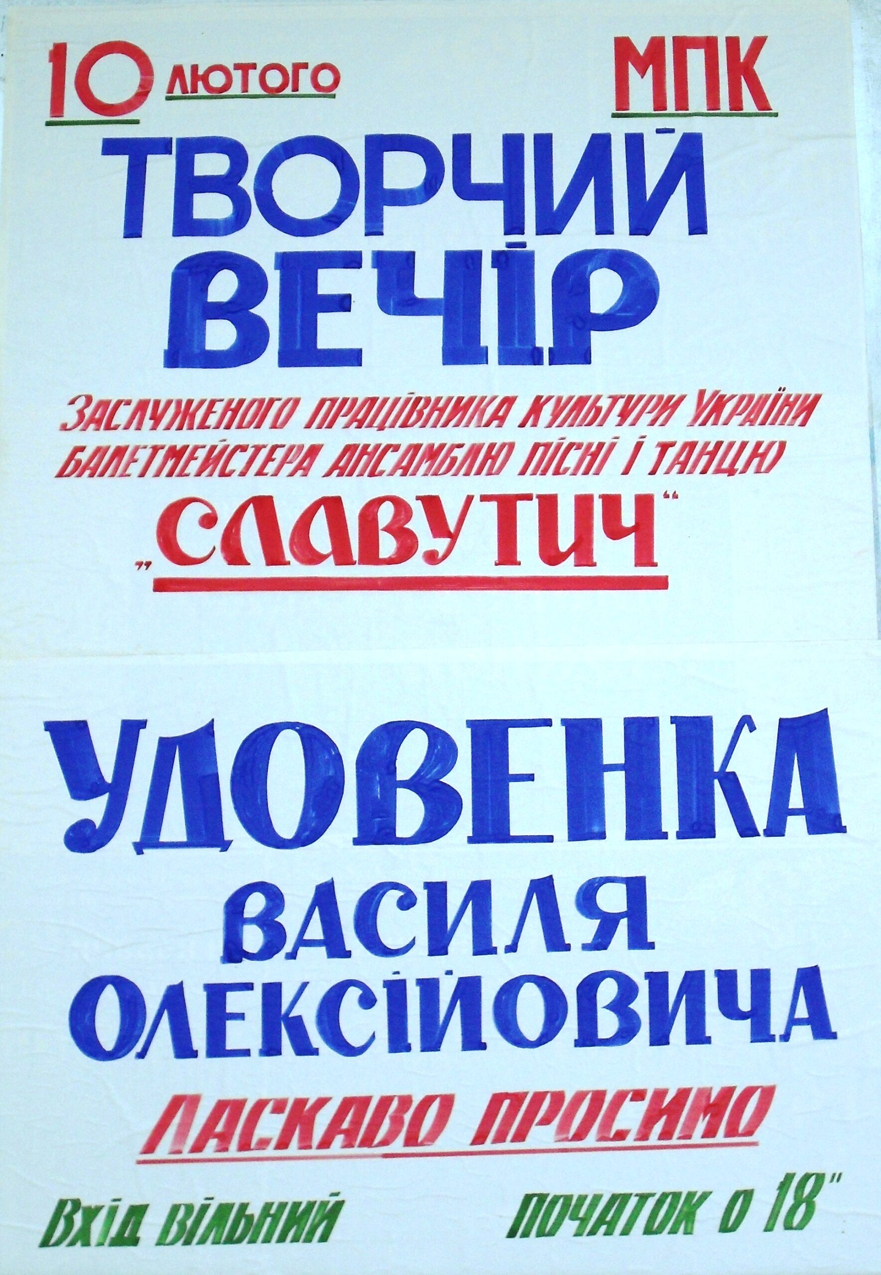 Балетмейстер-постановщик Василий Удовенко в течение 21 года создавал хореографические произведения для ансамбля песни и танца «Славутич», и вот теперь, рад представить всем желающим и свой творческий бенефис.