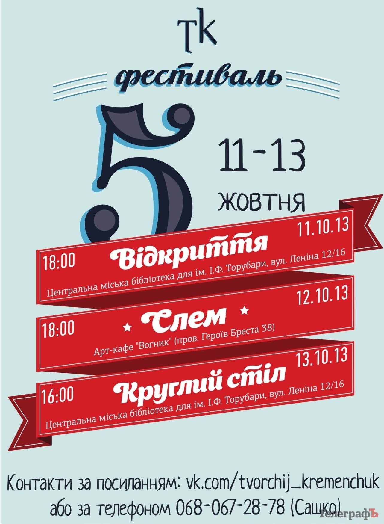 Впервые в Кременчуге трехдневный литературный фестиваль приурочен к 5-й годовщине арт-группы «Творческий Кременчуг»