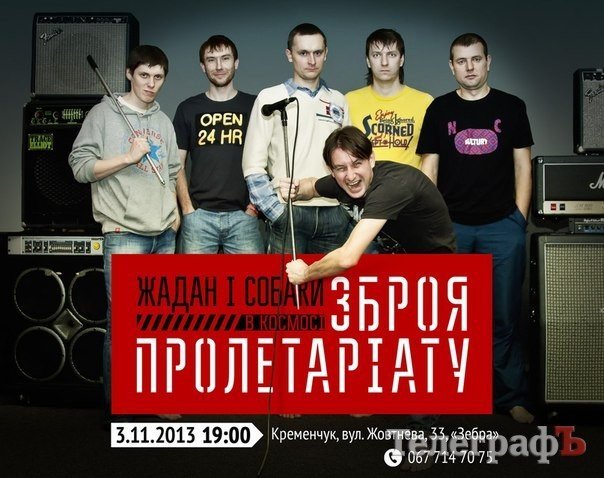 3 ноября в Кременчуге в рамках проведения культурного фестиваля «Чучупак», пройдет музыкальный концерт «Зброя пролетаріату » писателя Сергея Жадана и музыкальной группы «Собаки в космосе».