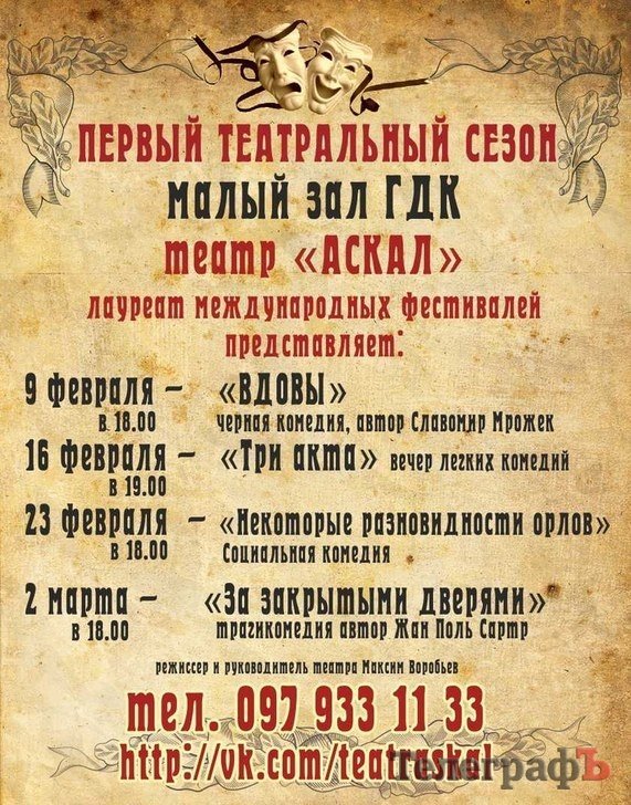 P.S. Театр «АСКАЛ» отличает от «невероятного множества» театральных коллективов современный нестандартный подход к постановкам. Как говорится: «Кино не для всех!».