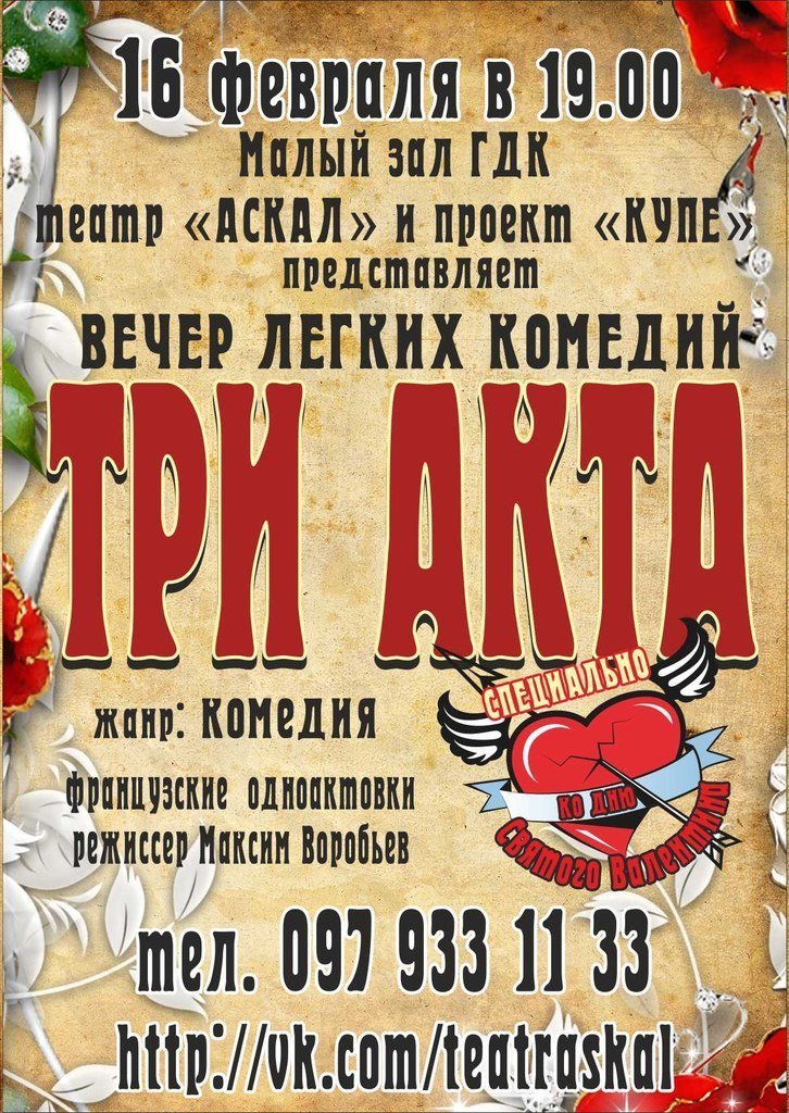 Что: Спектакль «Три Акта» от театра «Аскал»