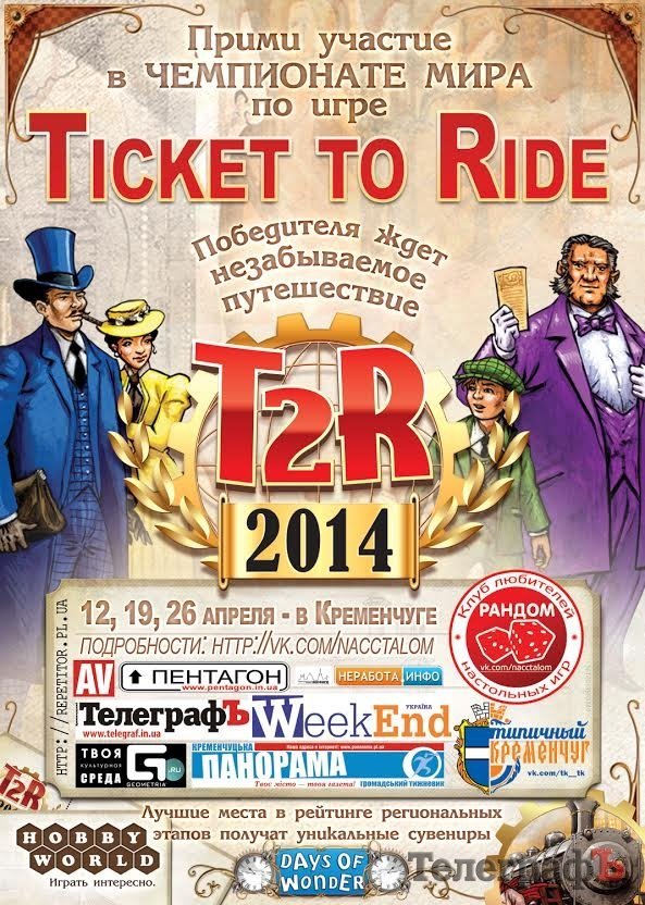 В апреле 2014 года в Кременчуге пройдет первый этап мирового чемпионата по настольной игре «Ticket to Ride: Европа». Чемпионат организован крупнейшим российским издательством настольных игр Hobby World, французским издательством Days of Wonder и кременчугским клубом настольщиков Рандом.