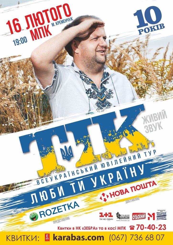 В Кременчуге «ТИК» ждет всех 16 февраля в Городском дворце культуры. Начало празднования 19.00. Билеты продаются в театральной кассе НК Зебра. Тел 067-736-68-07, 70-40-23