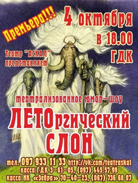 4 октября в Кременчуге «Аскал» откроет театральный сезон театрализированым юмор-шоу «ЛЕТОргический СЛОН».