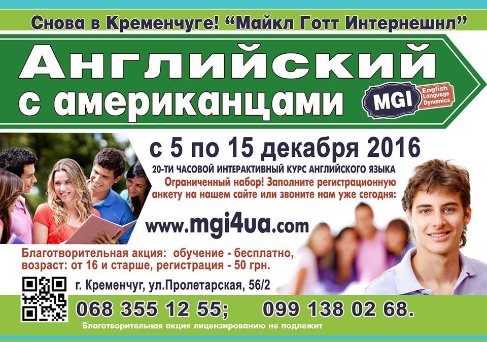Снова в Кременчуге с 5 по 15 декабря 2016 года интерактивный курс английского языка Michael Gott International.