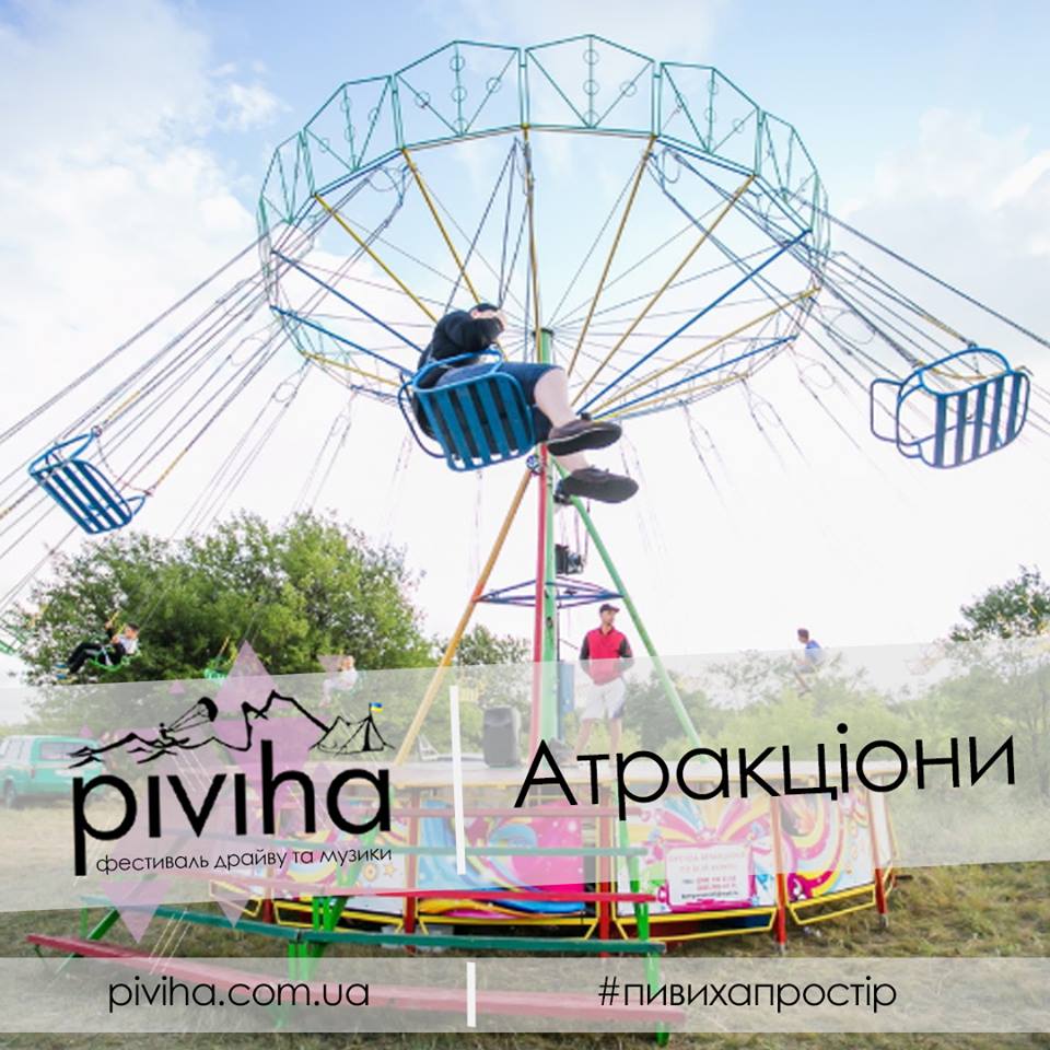 Безліч атракціонів очікують вас на фестивалі драйву та музики «Piviha»! Батути, гірки, еко- та етно-розваги і ще багато цікавого! Весело буде не лише дітям, а й дорослим.