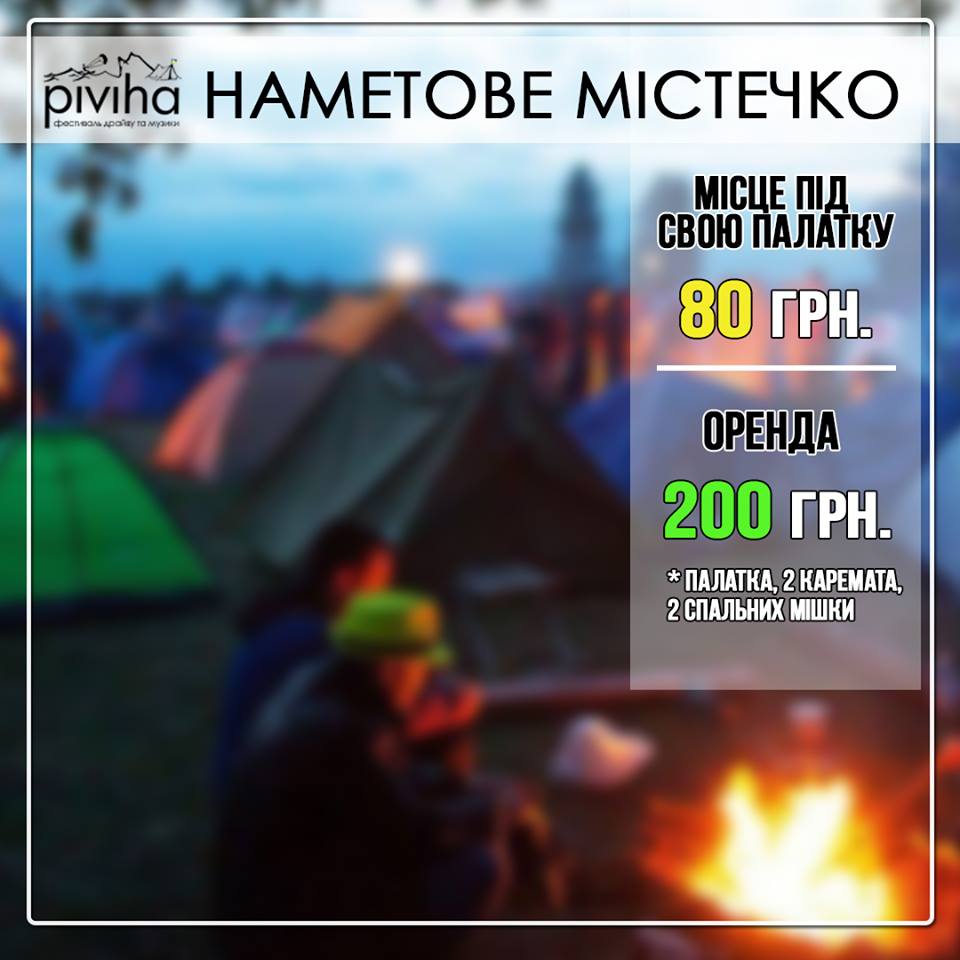 Вартість перебування на території кемпінгу – 80 грн за добу (намет).
