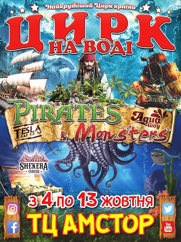 А ви готові сісти на корабель, який захватять справжнісінькі пірати? Готові побачити величезного восьминога з шестиметровими щупальцями, а потім потрапити у підводне царство та познайомитися з його неймовірними мешканцями? Якщо так, тоді вам до цирку на воді «Shekera».