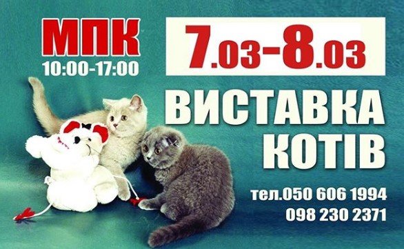 Якщо Ви хочете придбати собі улюбленця або просто помилуватися кицьками, приходьте в МПК ім. Петровського 7 та 8 березня з 10:00 до 17:00.