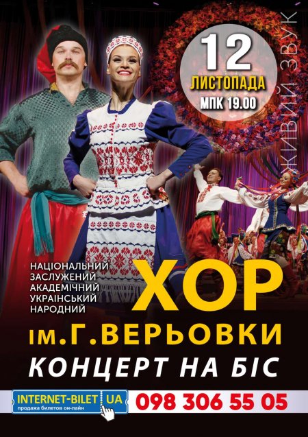 Національний Хор України ім. Г. Верьовки виступить 12 листопада 2020 року о 19.00, в МПК ім. Петровського