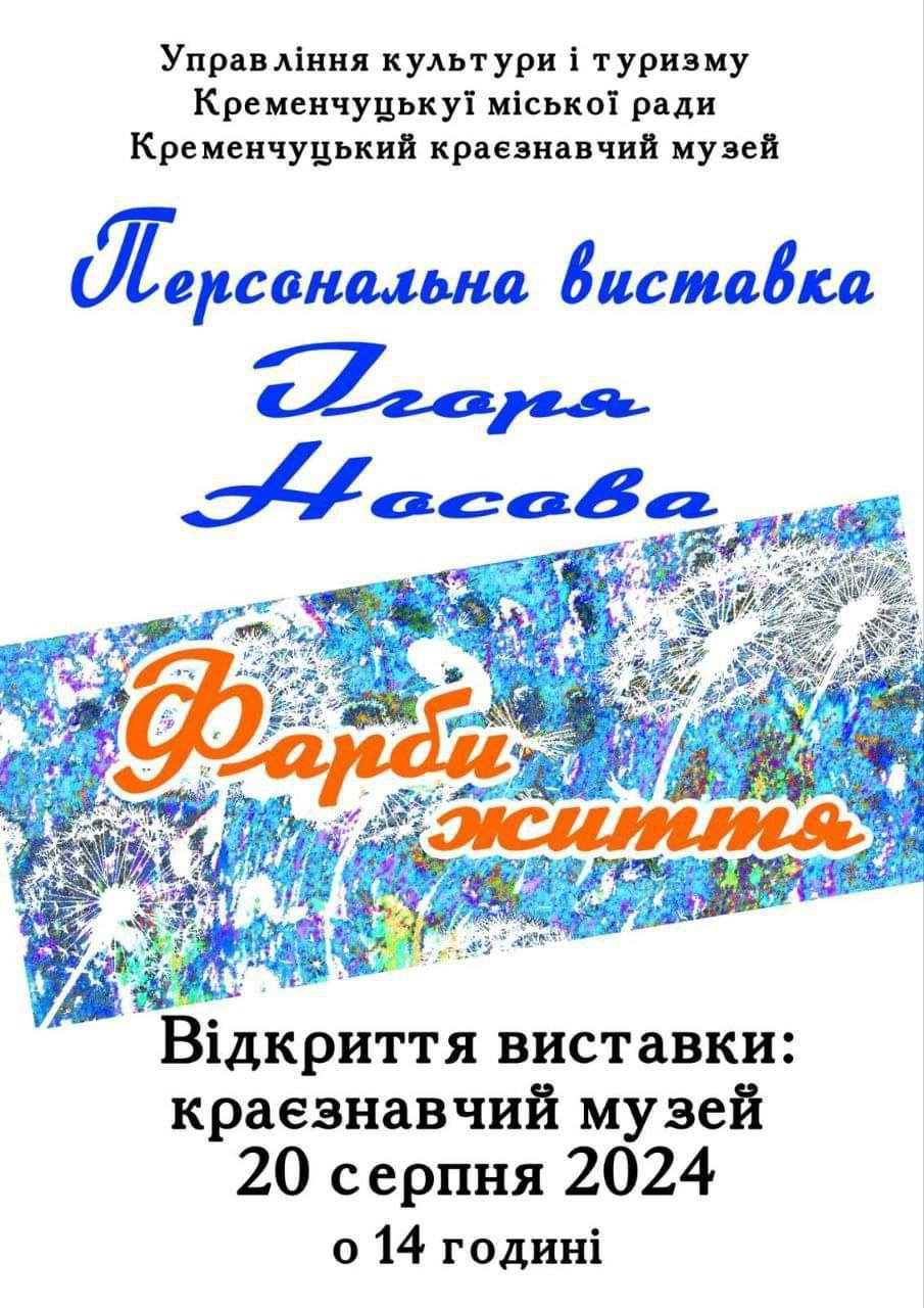 Сьогодні у Кременчуцькому краєзнавчому музеї відкриється персональна виставка «Фарби життя» фотографа Ігоря Носова.