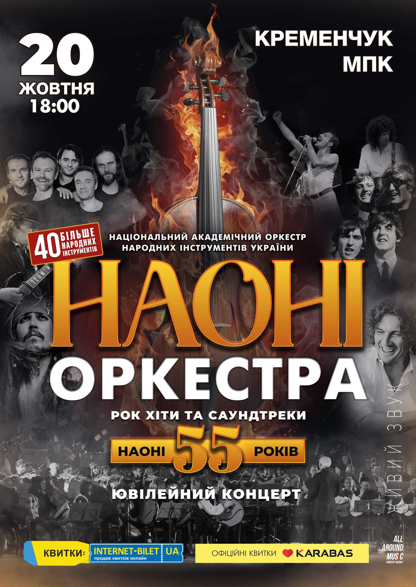 20 жовтня, о 18:00 в МПК легендарні «НАОНІ Оркестра» презентують у Кременчуці нове грандіозне шоу «Рок-хіти та саундтреки»!