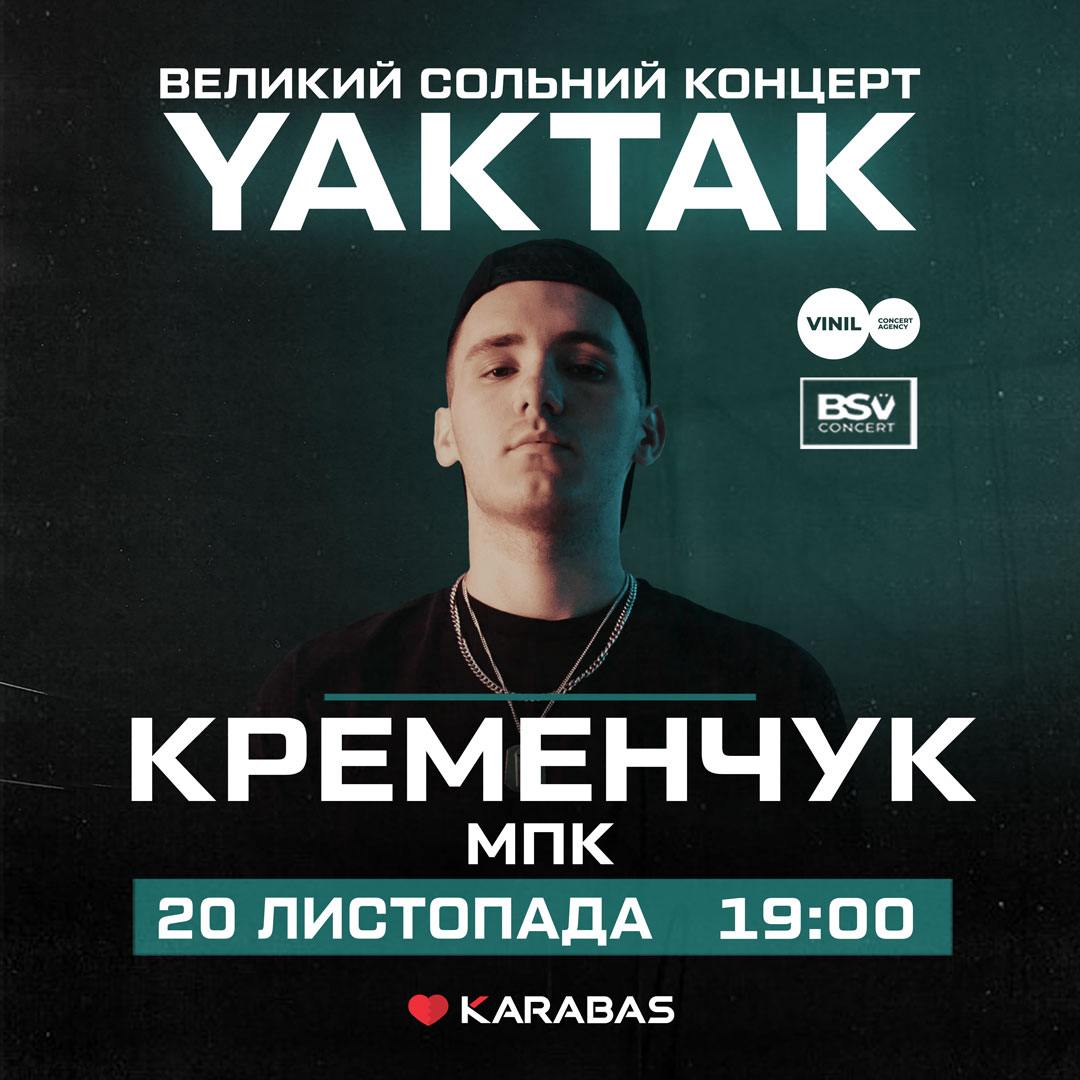 YAKTAK – український співак і автор пісень, який став справжньою сенсацією в світі української музики. За короткий творчий шлях він співпрацював і випустив чимало хітів із такими популярними артистами, як: Jerry Heil, MamaRika, KOLA та інші.