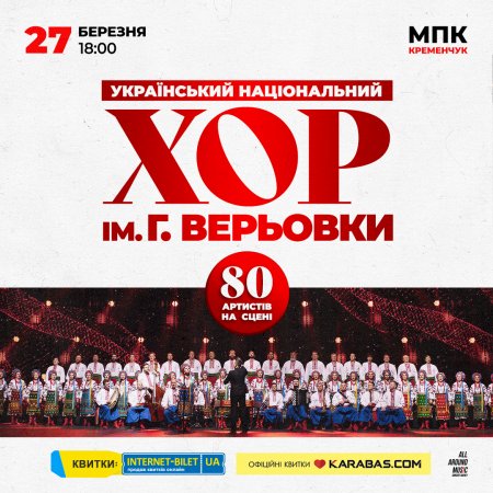 Світ захоплюється їхнім мистецтвом, аплодуючи стоячи! Легендарний Хор ім. Григорія Верьовки, відомий на найвищих світових сценах, презентує унікальну програму в Кременчуці.
