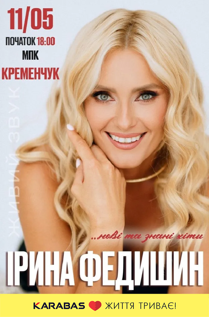 Кременчук, готуйтеся до вечора щирих емоцій — Ірина Федишин приїздить із великим концертом, який запам’ятається надовго!