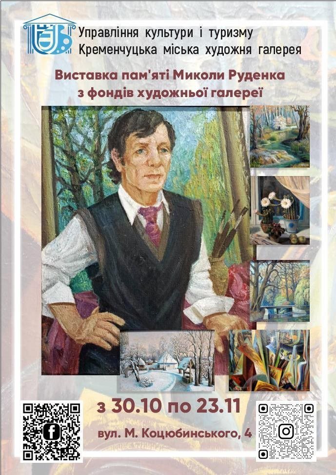Кременчуцька міська художня галерея запрошує всії поцінювачів прекрасного на виставіку пам’яті Миколи Руденказ фондів художньої галереї.