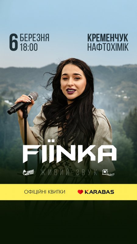 6 березня о 18:00 в палаці "Нафтохімік" відбудеться перший сольний концерт у Кременчуці відомої української співачки FIЇNKA