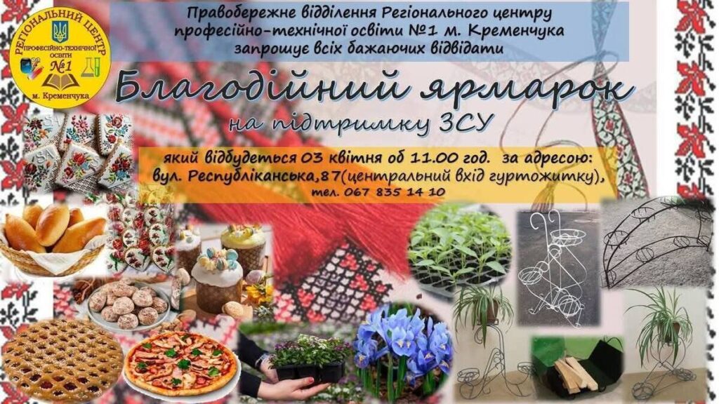 3 квітня о 11.00 на Раківці проведуть благодійний ярмарок на підтримку ЗСУ. Його організовує Регіональний центр професійно-технічної освіти №1.