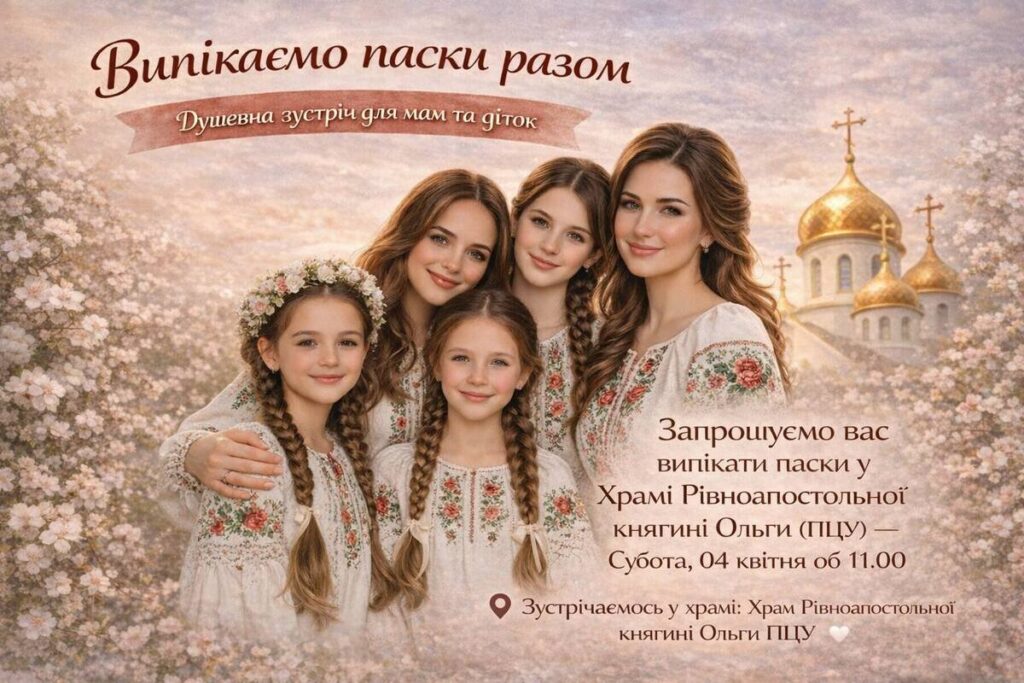4 квітня о 11.00 біля храму Рівноапостольної княгині Ольги проведуть безплатний майстер-клас для мам та дітей з випікання пасок.