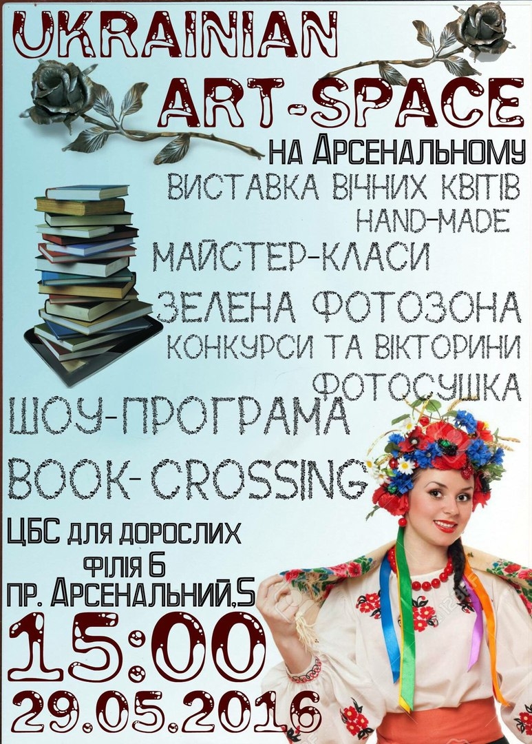 UKRAINIAN ART-SPACE на Арсенальному - це новий захід, де ти зможеш глибше дослідити культуру свого народу, дізнатися щось нове, навчитися багатьом корисним речам та просто відпочити з користю для себе. І все це в абсолютно новому та цікавому форматі!