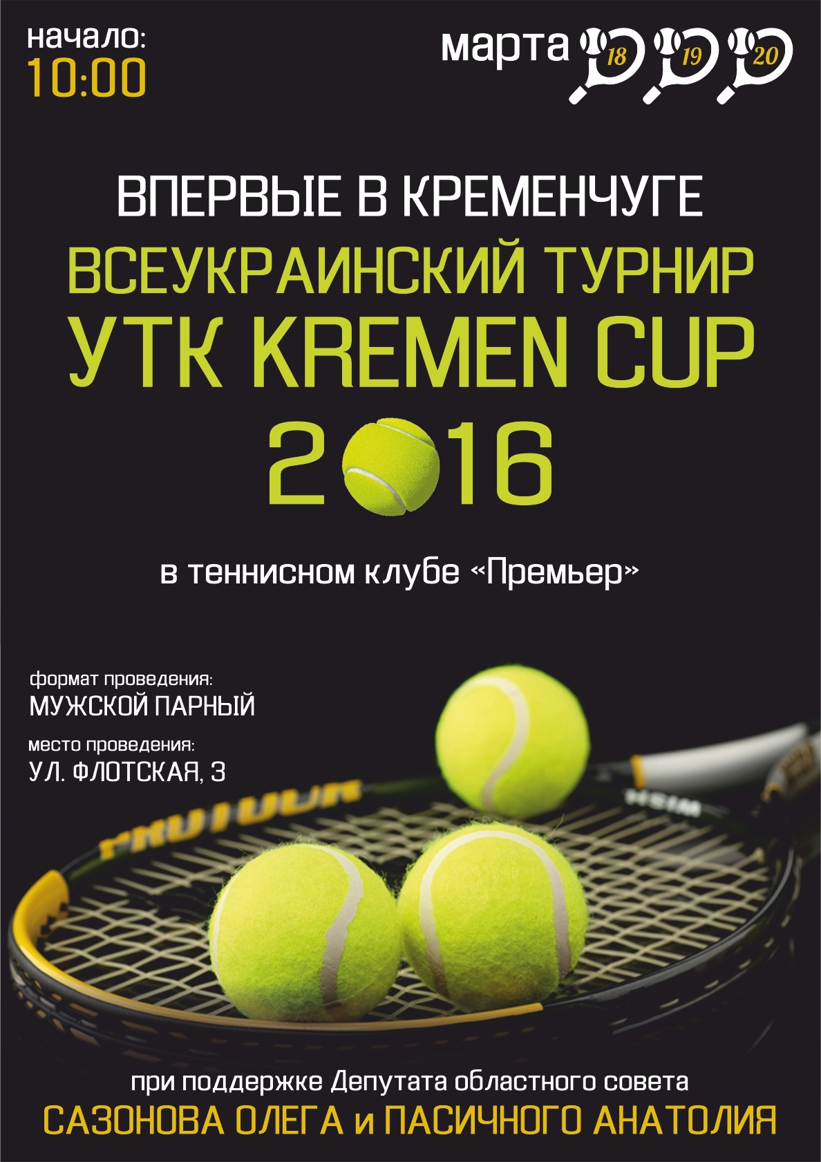 Впервые в Кременчуге состоится Всеукраинский турнир УТК KREMEN CUP 2016