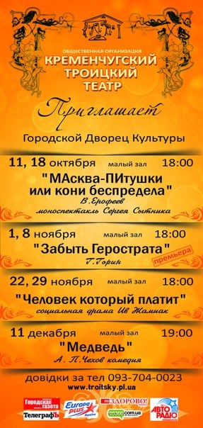 Все театральные представления проходят в малом зале Городского дворца культуры