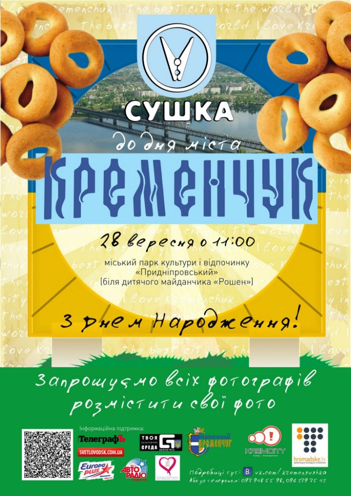 Запрошуємо всіх кременчужан та гостей нашого міста на свято, присвячене святкуванню Дня Міста. Початок свята о 12.00 у Придніпровському парку.