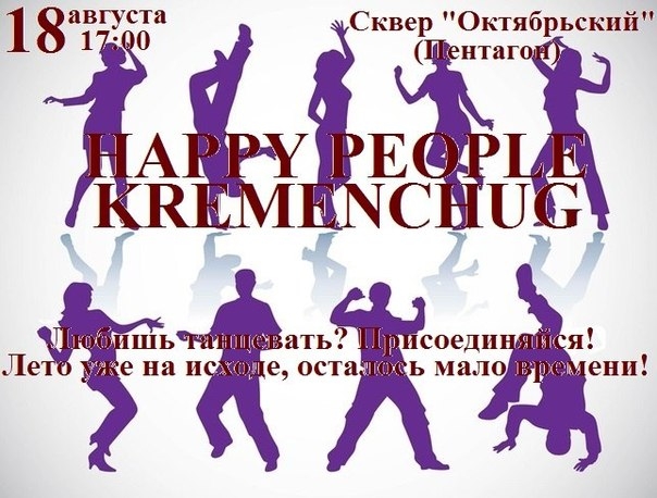 В понедельник, 18 августа, в 17.00, возле фонтана в сквере «Октябрьский» пройдет съемка видеоролика «Happy People Kremenchug», в которой могут принять участие все желающие.