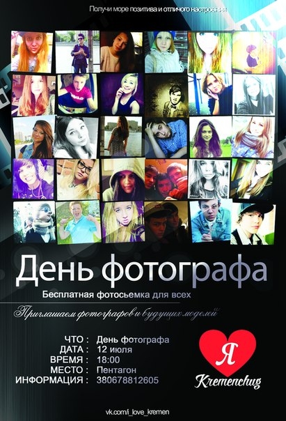 В субботу, 12 июля, все желающие приглашаются на бесплатный фотосет от лучших фотографов Кременчуга.